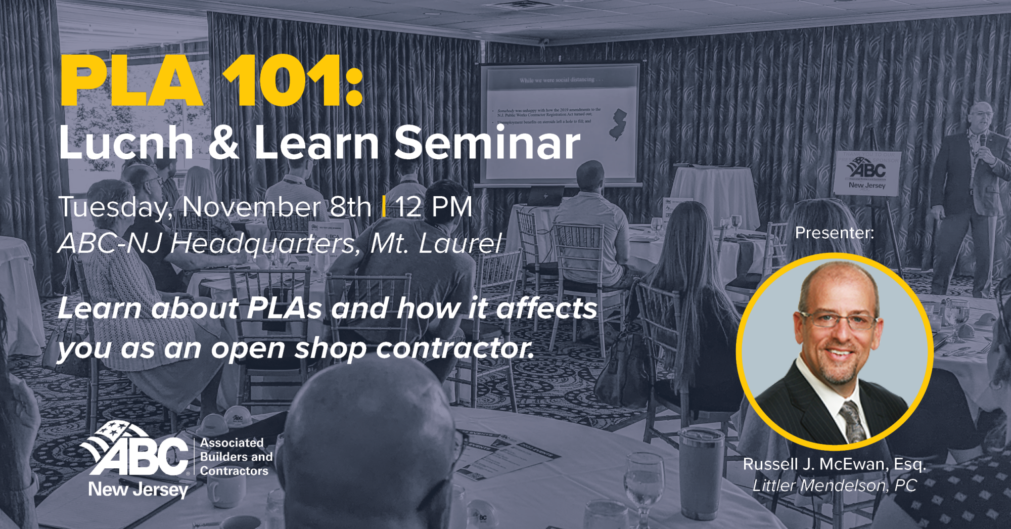 Come and learn more about PLAs and how they can affect you and your business as an open shop contractor. Lunch will be provided. Zoom option is available for those unable to attend in person.
